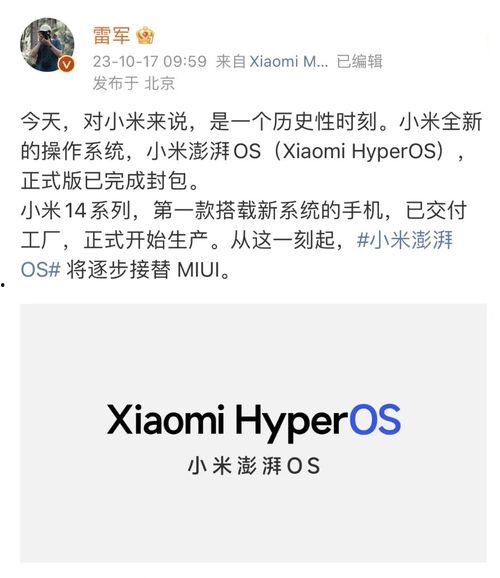 小米系统澎湃最新版本的爆料让人充满期待。无论是性能的提升、系统的优化,还是界面的革新,都预示着小米手机将再次引领行业潮流。让我们一起期待这款神秘的新版本,看看它将为我们带来怎样的惊喜吧!